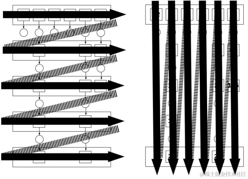 更好的方法是逐个取出元素,并按顺序对它们应用所有的转换,这样可以直接得到最终结果,无需中间数组。这种方法的伪代码如下:我们交换了两个循环。