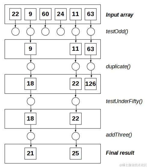 我们将按顺序将这些功能应用于一个数组: