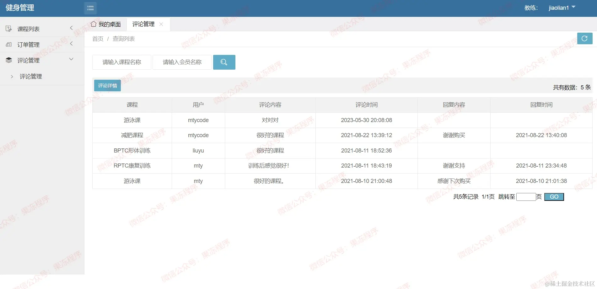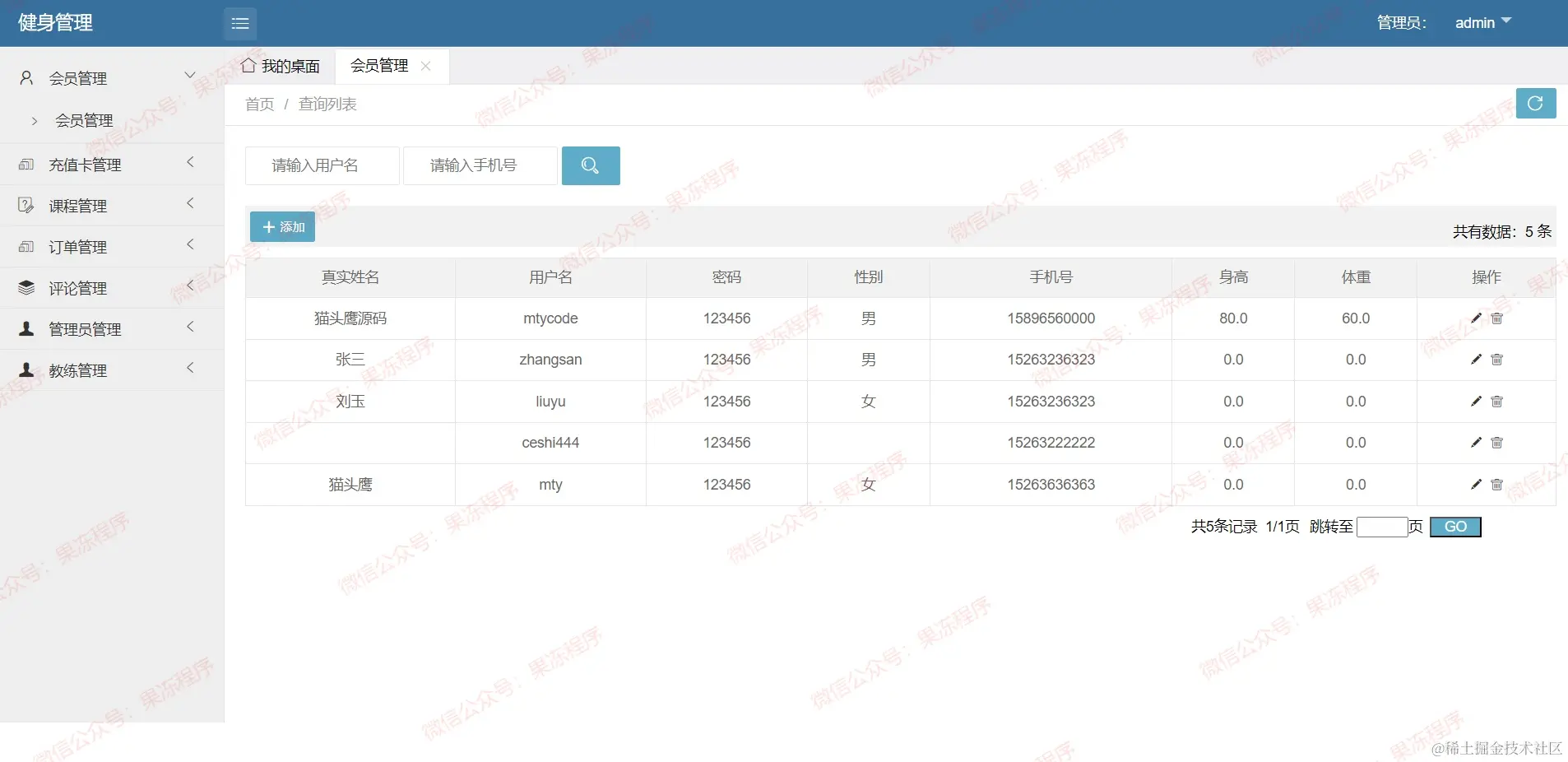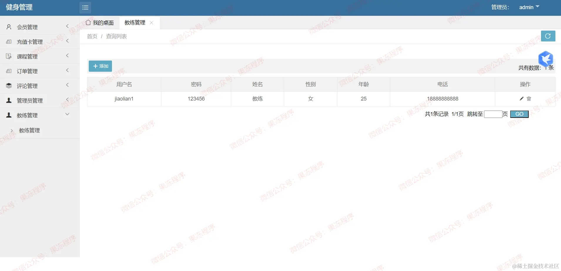 该项目是一个健身房管理系统,分为用户端,管理员端,教练端。