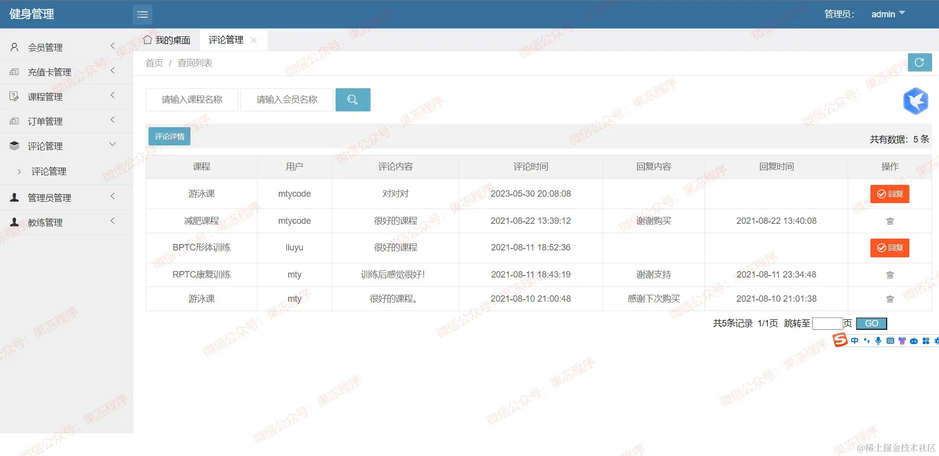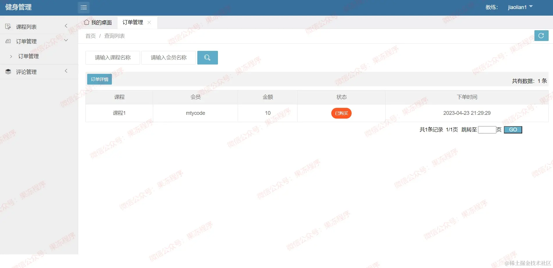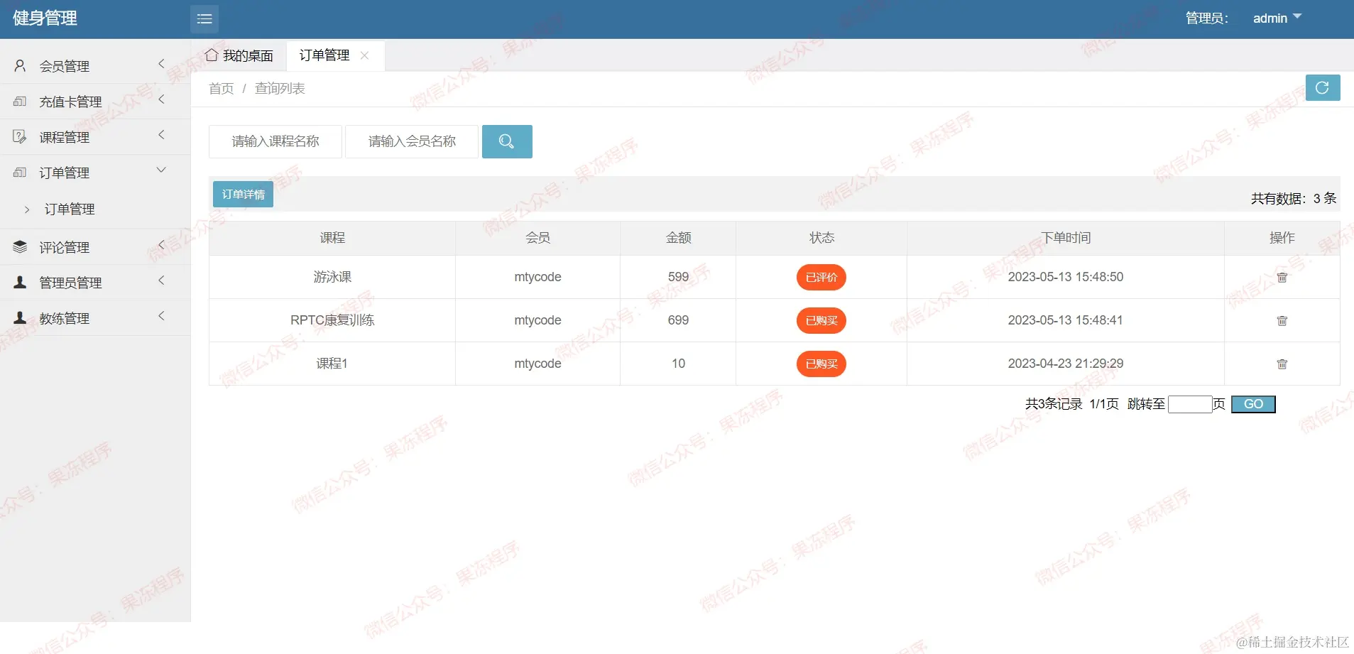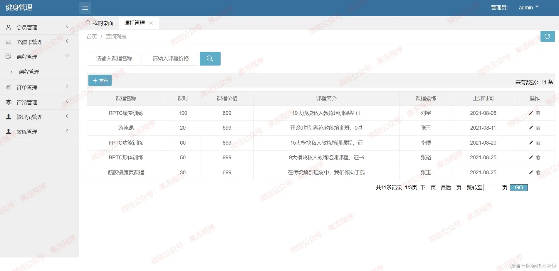 该项目是一个健身房管理系统,分为用户端,管理员端,教练端。