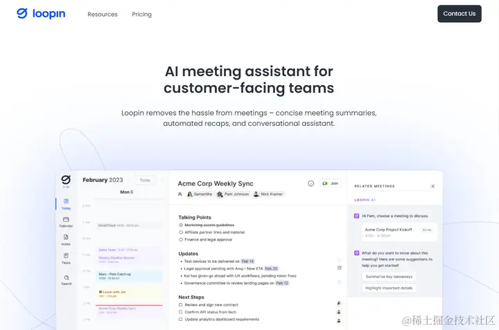 Loopin HQ 是一款专为面向客户的团队设计的人工智能会议助手。它旨在通过消除麻烦并提供简洁的会议摘要、自动回顾和对话助理来彻底改变会议的进行方式。Loopin 使用最先进的人工智能技术来转录会议录音并生成会议纪要。您可以专注于对话,而不必担心做笔记。