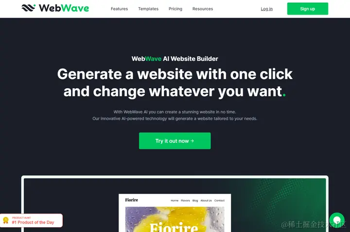 WebWave 是一款AI创建网站工具,只需单击一下即可生成网站。只需单击“生成”按钮,先进的算法就会创建一个根据您的描述量身定制的网站。AI 会生成最适合您的描述的布局、图像、调色板和字体。但是,您可以稍后使用拖放编辑器调整所有内容。