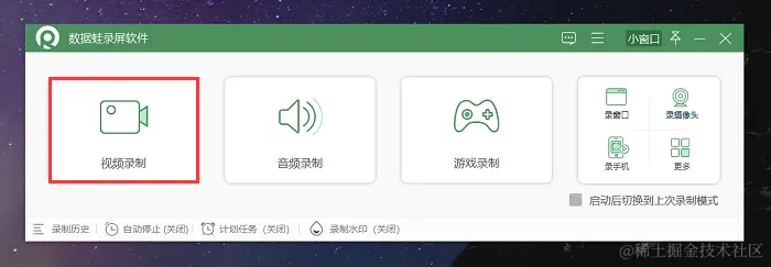 步骤1:访问官方网站,下载适用于Windows系统的数据蛙录屏软件,并按照提示进行安装。安装完成后打开软件,它提供了多个录制模式,我们选择视频录制模式。