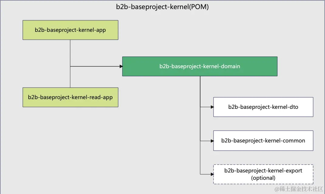 5. b2b-baseproject-kernel-domain 领域层等(也可以不划分子模块,按需划分即可);