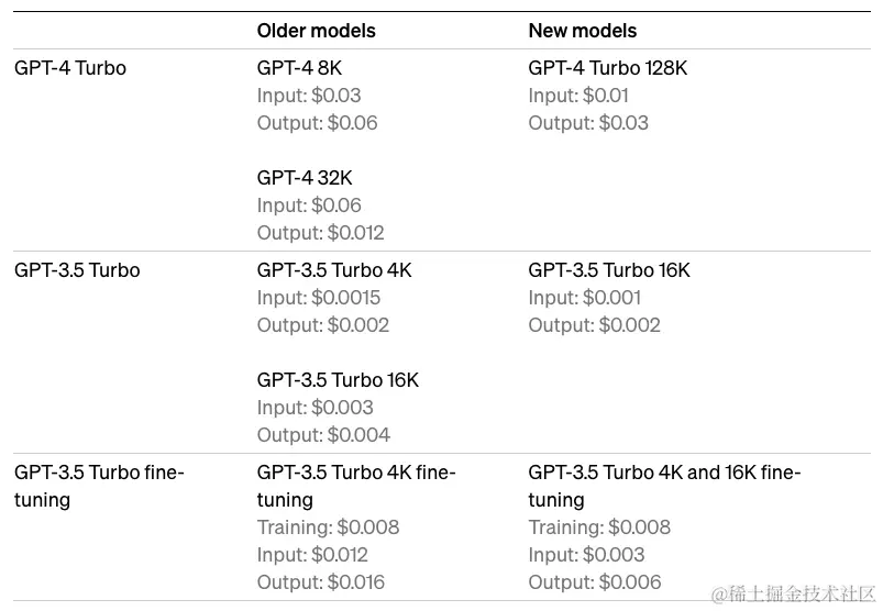 GPT-4 Turbo 目前仅向软件开发商提供使用版,未来几周会向大众发布,处理 token 的费用也比前一代 GPT-4 便宜 3 倍,输入仅需 0.01 美元,输出仅需 0.03 美元。