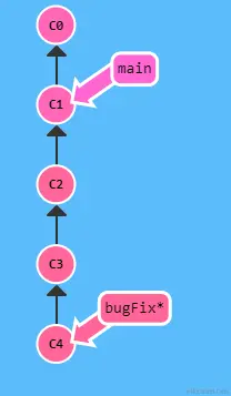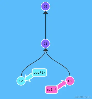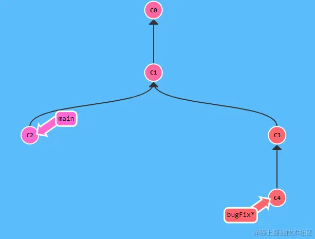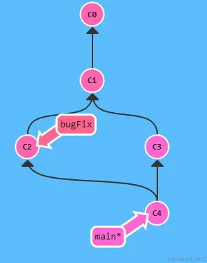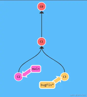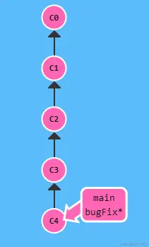 假设我们现在处于bugFix分支,那么初始时Head是指向bugFix的(Head->bugFix)