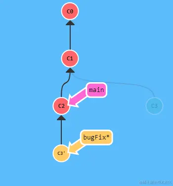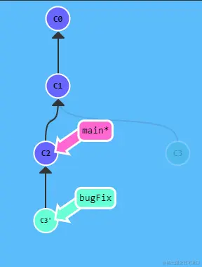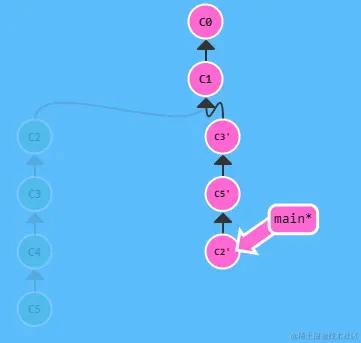 可以发现,revert之后,我们要撤销的提交记录后面多了一个新提交!这是因为新提交记录 C2' 引入了更改 —— 这些更改刚好是用来撤销 C2 这个提交的。也就是说 C2' 的状态与 C1 是相同的。