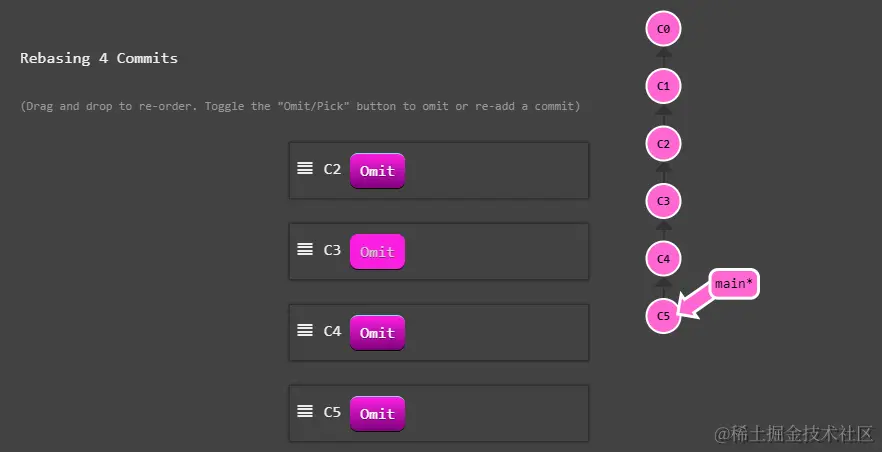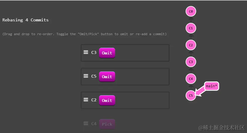 Rebase 实际上就是取出一系列的提交记录,“复制”它们,然后在另外一个地方逐个的放下去