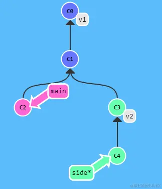 一般情况下,HEAD指向当前所在分支的最新提交。但HEAD也能指向历史提交,我们可以使用 Git checkout 命令将HEAD移动到某个历史提交点,这被称做分离HEAD