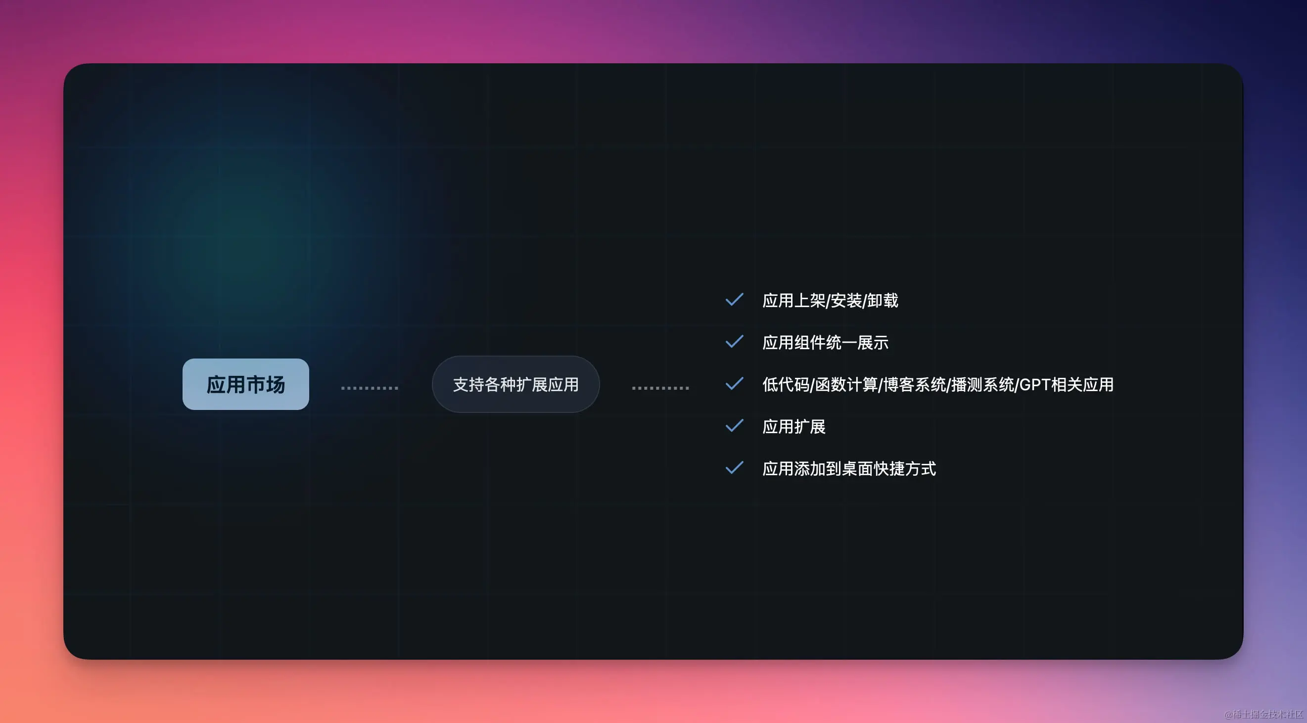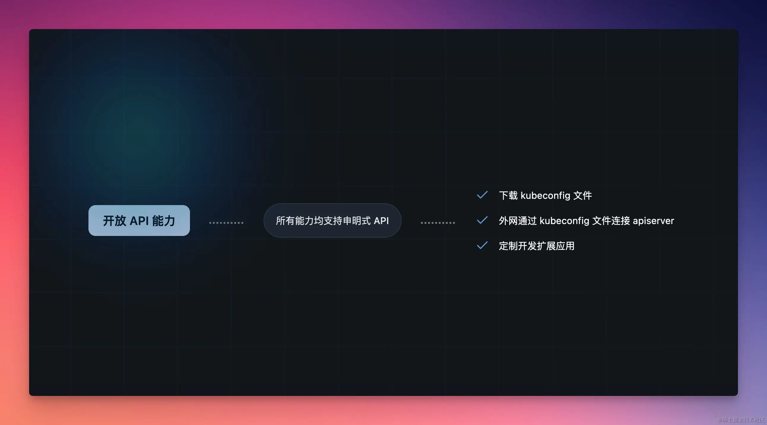 Sealos 提供的核心能力相当完整并且完全兼容 Kubernetes API,这意味着其拥有极强的扩展能力。你可以利用整个云原生生态,构建和扩展你的应用。
