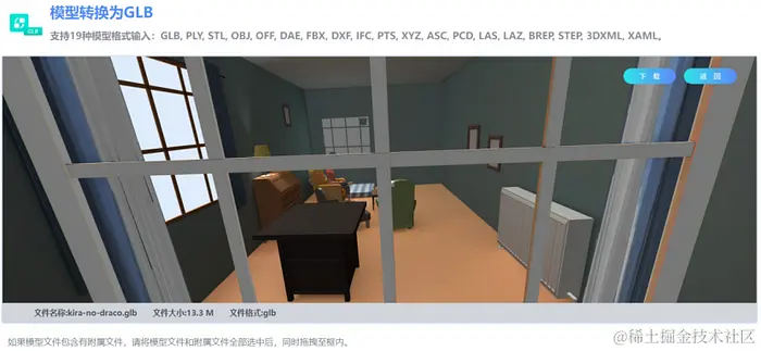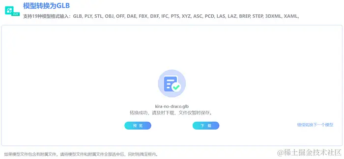 在等待一段时间后,网站完成了模型格式的转换,展示页面如下。