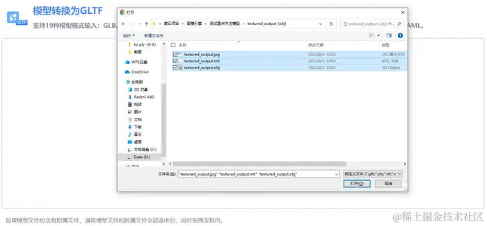 OBJ转GLTF网站也支持通过拖拽的方式,将文件进行上传。在资源管理器中,选择一份或多份模型相关文件,拖拽至OBJ转GLTF网站中的文件接收区域,即可完成3D模型文件的上传。
