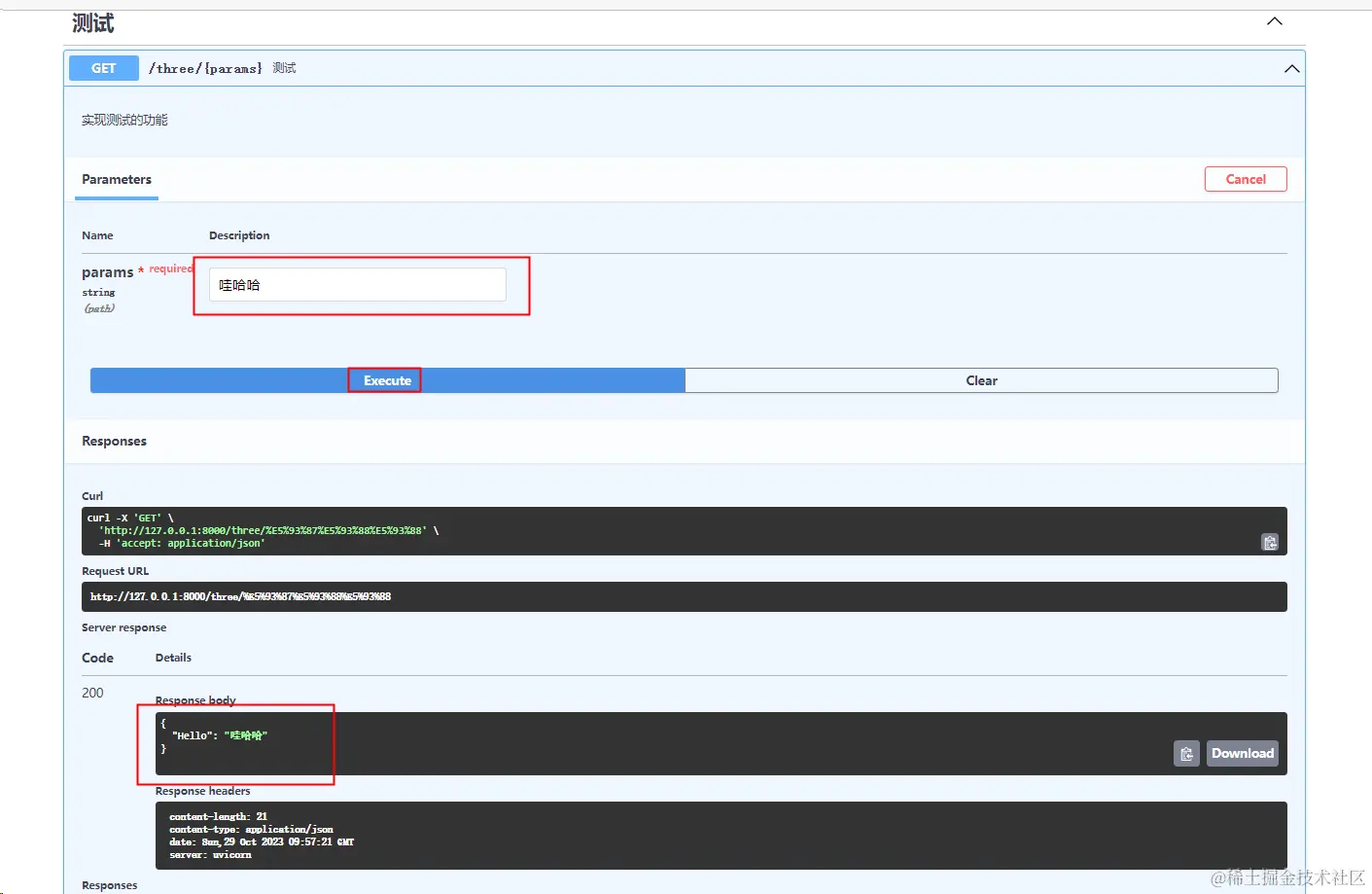 @app.get("/three/{params}", summary='测试', description='实现测试的功能', tags=['测试'])