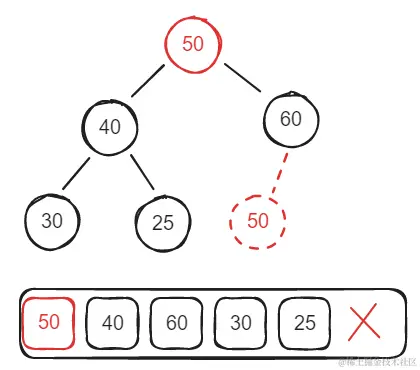 此时为50符合最大堆特性所以还在原来位置