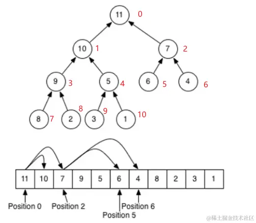 堆节点索引对应关系就是二叉树的层序遍历