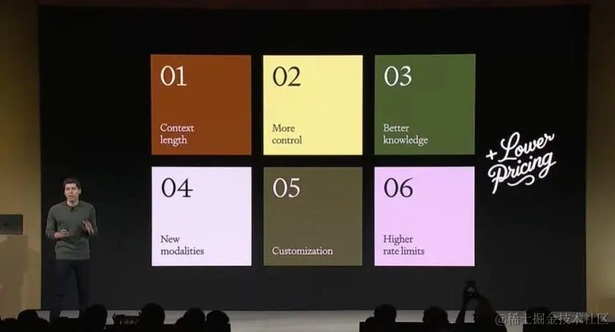 人工智能行业龙头OpenAI的首届开发者大会揭幕。OpenAI首席执行官山姆·奥特曼在接近45分钟的开幕演讲中,向全球开发者和ChatGPT用户展示了AI龙头即将推出的一系列产品更新。主要大概就是四个内容:
