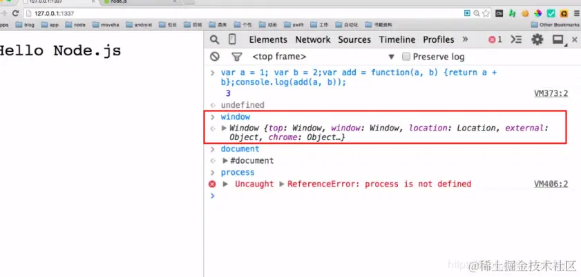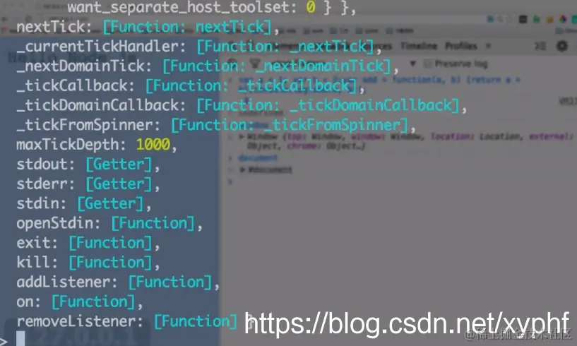 打开浏览器控制台,我们发现浏览器有自己的全局变量window,而node命令行有自己的全局变量process;