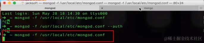 现在我们用认证授权的方式启动mongodb