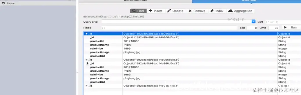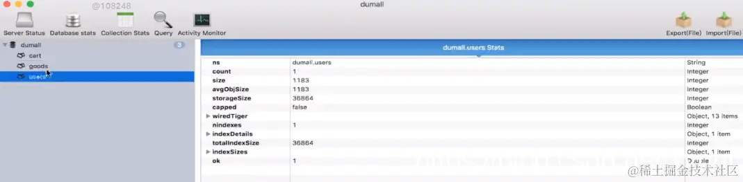 这时候数据已经出来了,这就是给我们的mongodb创建用户