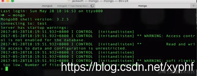 如果指定数据库是test,那么test还是可以访问的,因为我们使用的是非授权的方式启动数据库