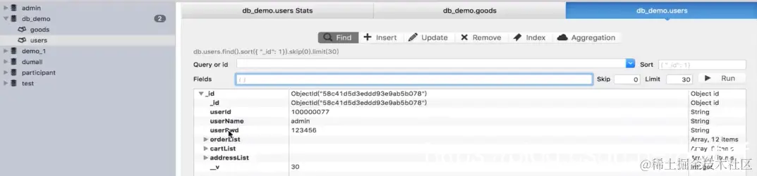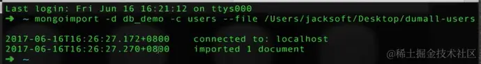 mongo import -d db_demo -c users --file /User/jacksoft/Desktop/dumall-users