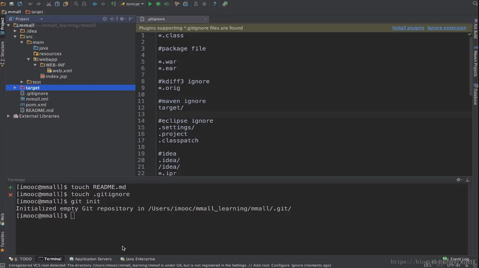 下面我初始化一下git,把我们的项目推送到git上。然后讲一下如何初始化git仓库。