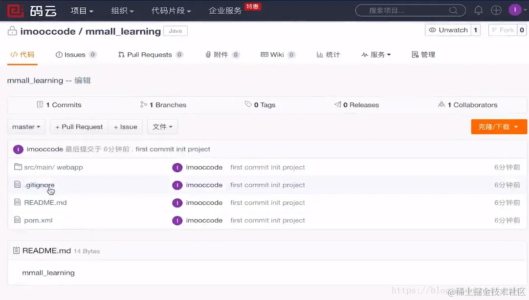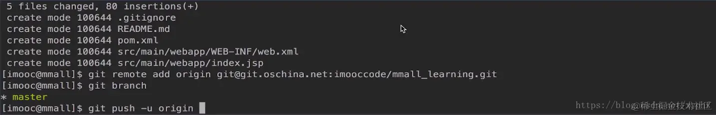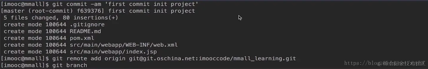 到这里我们的git的初始化,包括创建项目的分支都完成了。