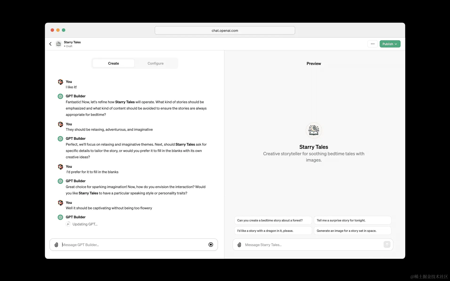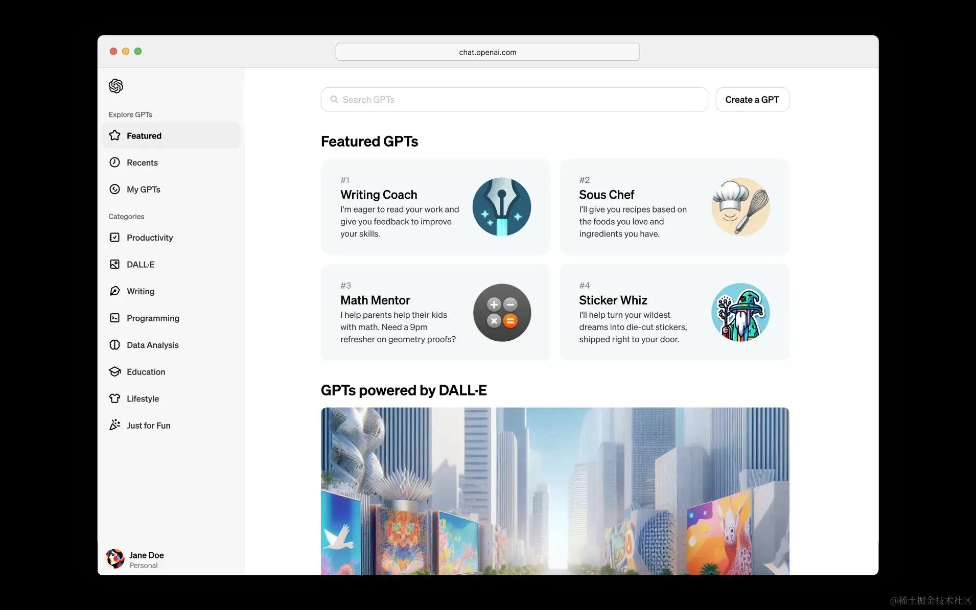 每一个GPT就像是ChatGPT的一个为了特殊目的而做出的定制版本。用户可以为GPT添加指令、外部知识库和动作。这一创举使得创建应用更加简单,尤其是对那些不懂代码的人来说。