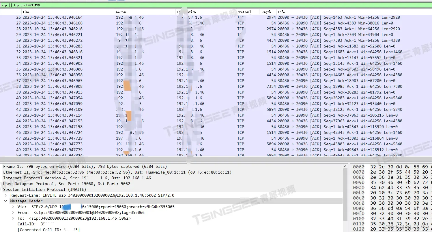1)首先,查看到用户使用的是国标GB协议接入到平台中,于是通过抓包分析问题;