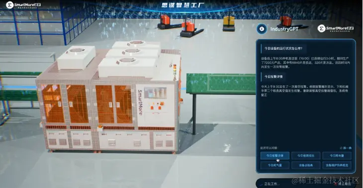 IndustryGPT可回答产线设备运行状况、设备使用事项等信息
