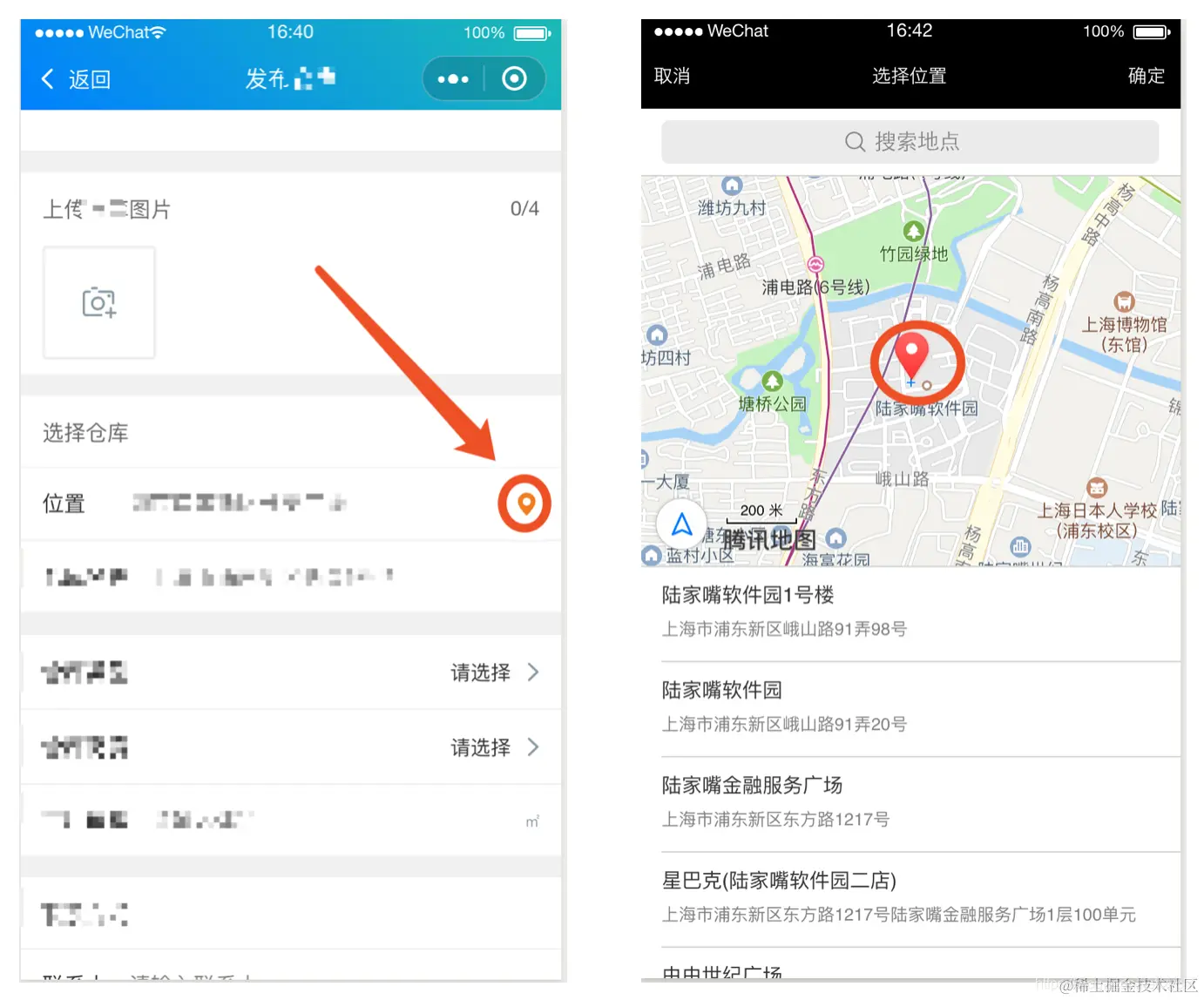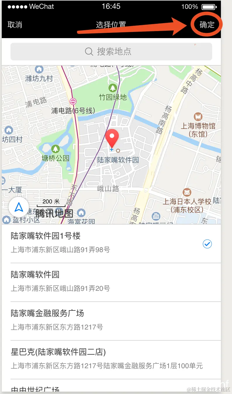 业务场景:点击地点图标后,可以搜索当前地点,点击地图中的浮标确定后,可以填充地址栏。