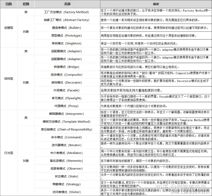 - 创建型模式(Creational) :关注对象的实例化过程,包括了如何实例化对象、隐藏对象的创建细节等。常见的创建型模式有单例模式、工厂模式、抽象工厂模式等。