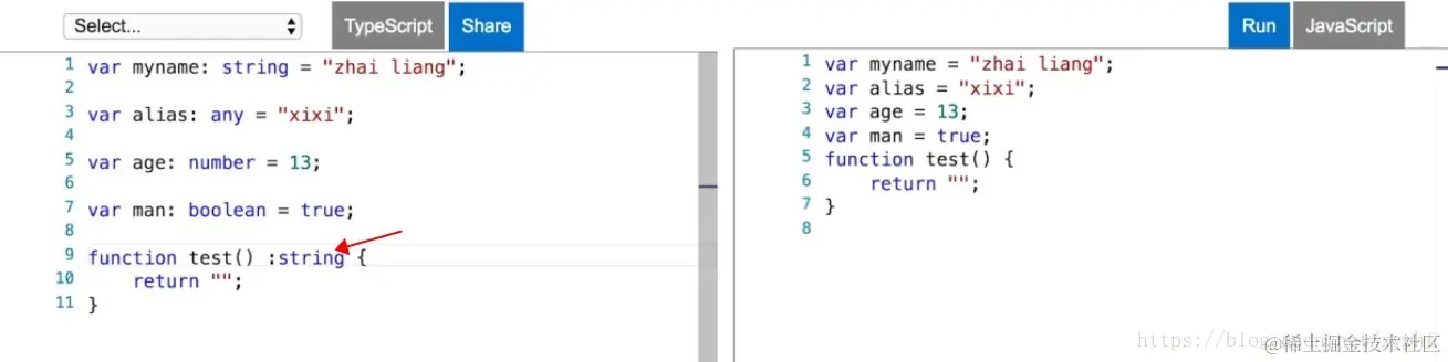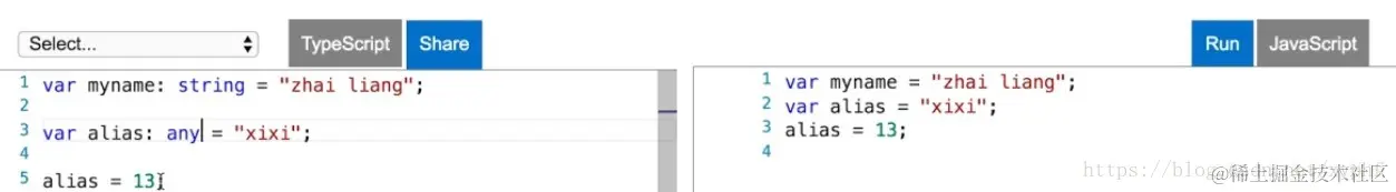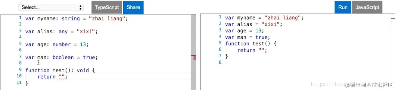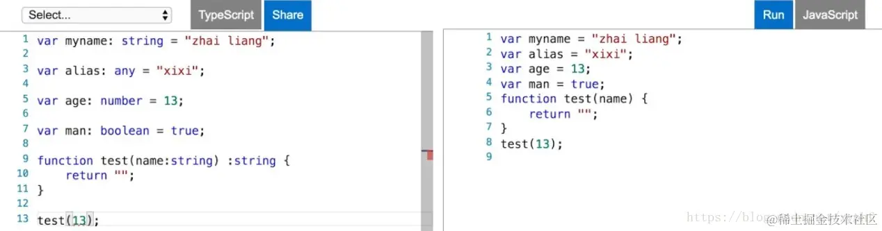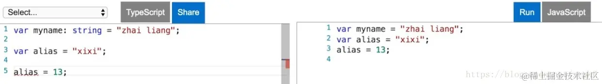 因为JavaScript中没用类型检查的概念,左边编辑器会有个错误的提醒,但是编译以后的JavaScript代码是可以正常执行的;
