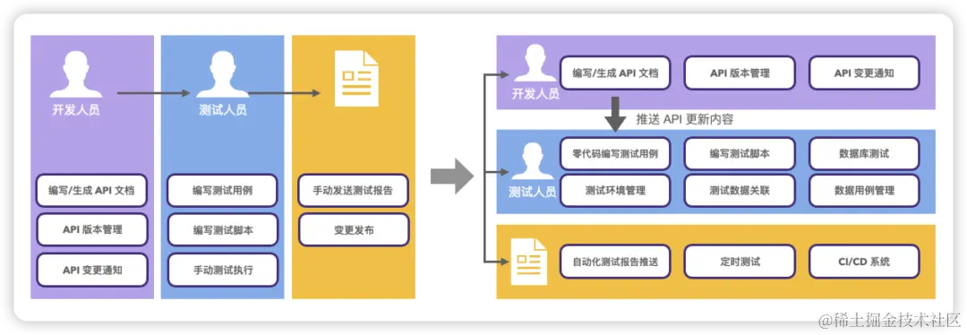 这看似简单的环节,之前由于没有统一平台的支持,只依靠Postman、Jenkins等工具维护用例脚本,在开发和测试之间想实现无缝对接是非常困难的。MeterSphere平台可以很好地解决这个问题,它将各域的接口管理、自动化用例管理集中在同一个平台进行管理,助力研发协作模式从串行到并行的升级,实现测试左移,最终提升研发效率。