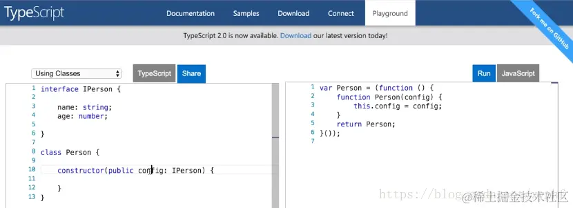 TypeScript在你传入参数的时候会去检查你的参数属性,必须含有name和age属性
