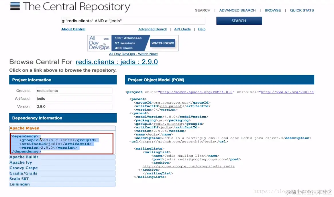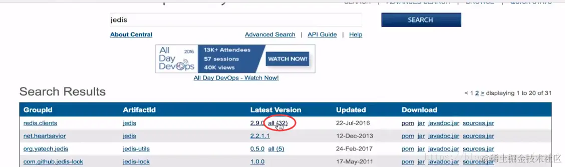 (2)搜索中央仓库jedis