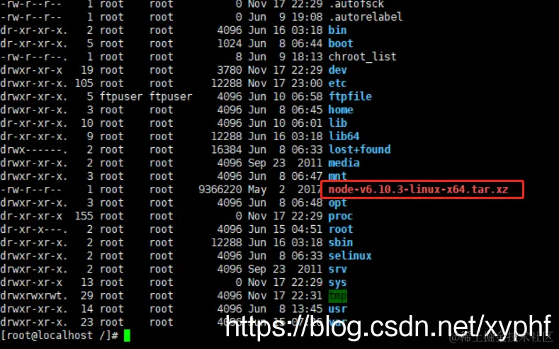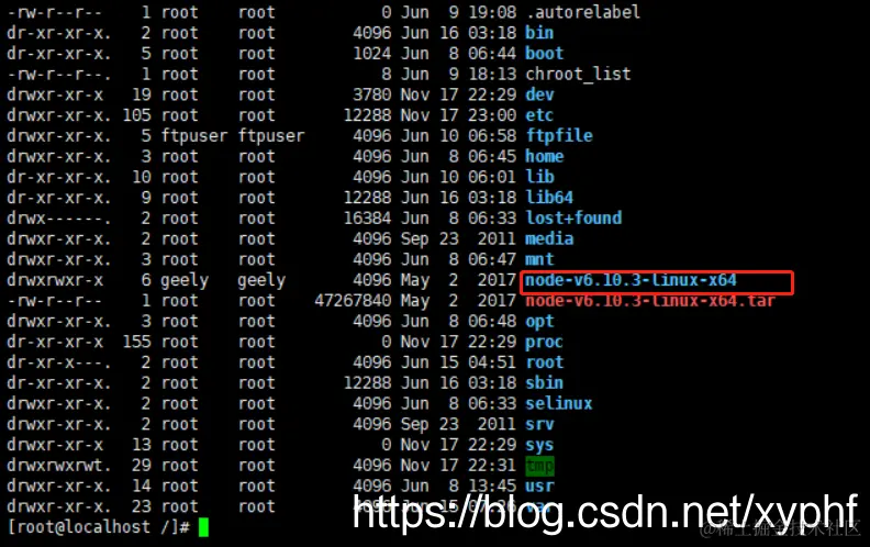 执行 tar -xvf node-v6.10.3-linux-x64.tar