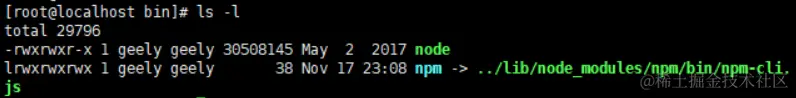 输入 ls -la 查询详细列表,我们可以看到node包已经拉取下来了
