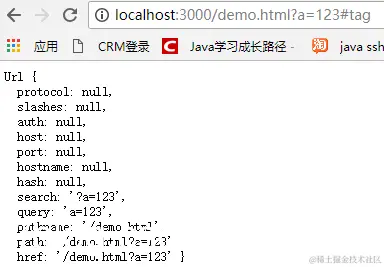 // 第一种: 我们可以直接将完整的url放入url.parse中,如util.inspect(url.parse("http://localhost:3000/demo.html?a=123#tag"))