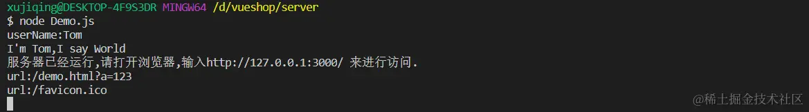 运行 node Demo.js