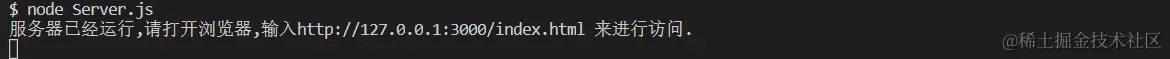 console.log("服务器已经运行,请打开浏览器,输入http://127.0.0.1:3000/index.html 来进行访问.")