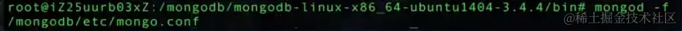 执行 mongod -f /mongodb/etc/mongo.conf, -f表示指定配置指向