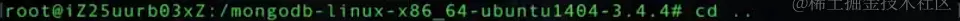 cd mongodb-linux-x86_64-ubuntu1404-3.4.4 进入mongodb-linux-x86_64-ubuntu1404-3.4.4/bin 目录
