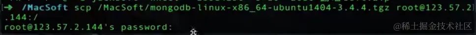 scp /MacSoft/mongodb-linux-x86_64-ubuntu1404-3.4.4.tgz root@123.57.21.144:/