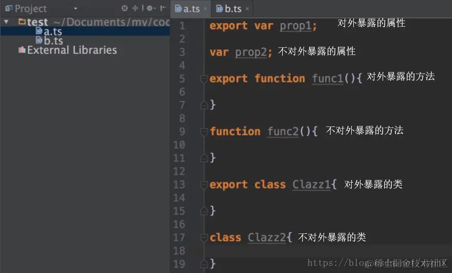 这是TypeScript模块的使用,他可以控制哪些模块暴露对外使用,哪些模块仅在当前模块使用;
