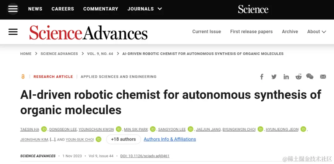 该研究以《AI-driven robotic chemist for autonomous synthesis of organic molecules》为题,发表在《Science Advances》上。