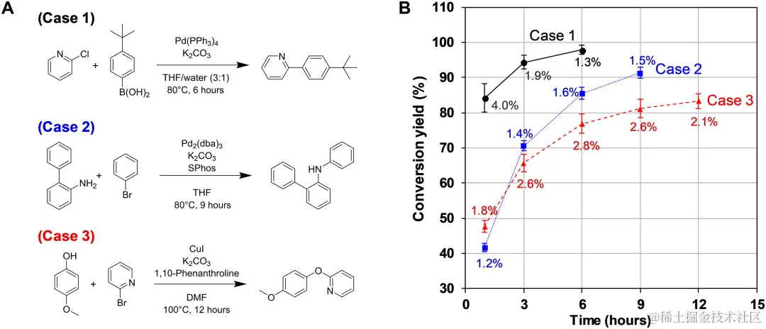 为了验证合成机器人的可重复性,研究人员对三种典型的芳香偶联反应(Suzuki 偶联、Buchwald 反应和 Ullmann反应)进行了实验再现性研究。