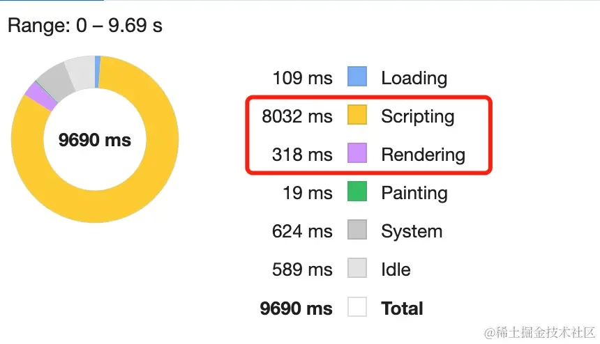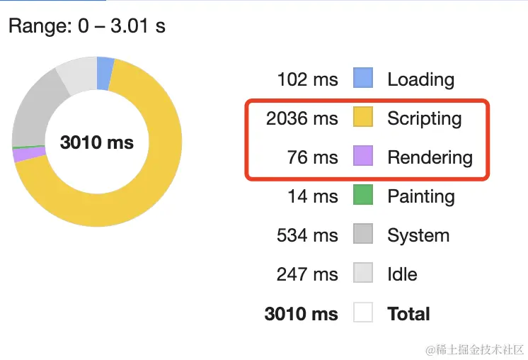有人会问,不应该是数据量多导致渲染慢吗?那为啥主要耗时都在 Scripting 呢?