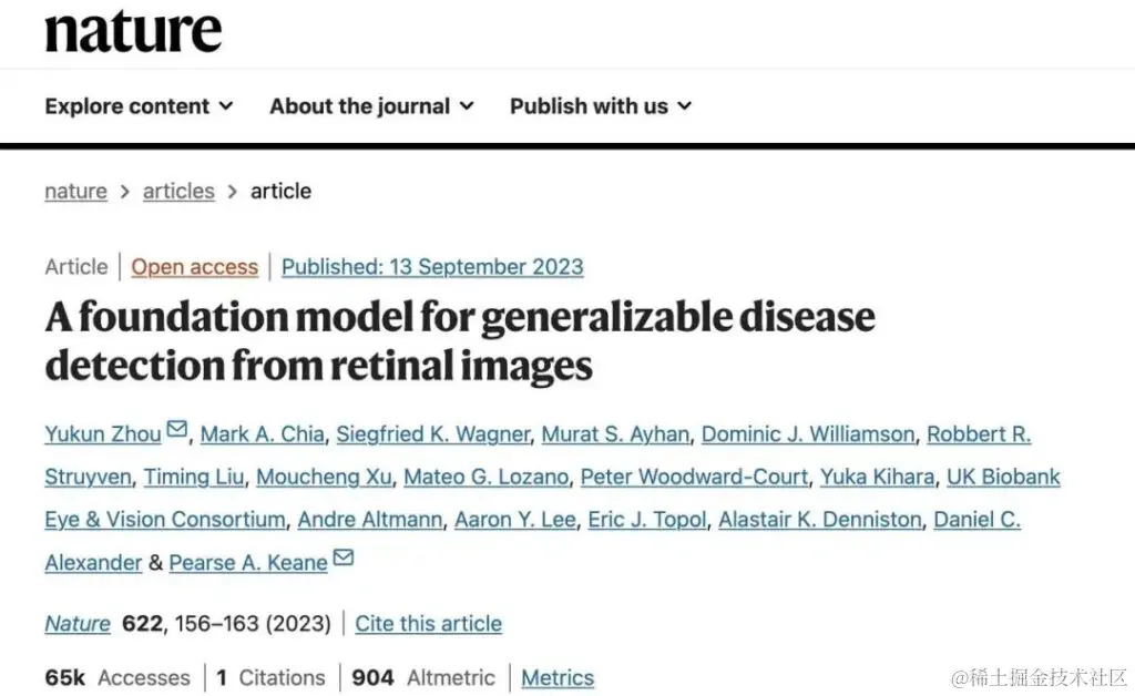 截至目前,RETFound 作为基础模型是医学成像中的少数成功应用之一,它在提高模型性能、减轻医学专家标注负担的同时,也引发了人们对于医疗 AI 落地应用的关注。
