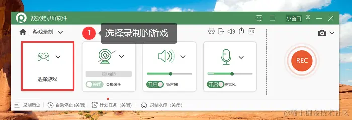 第1步:在官网下载适用于您操作系统的数据蛙录屏软件,打开软件后,您可以看见 “游戏录制” 模式,我们点击它。